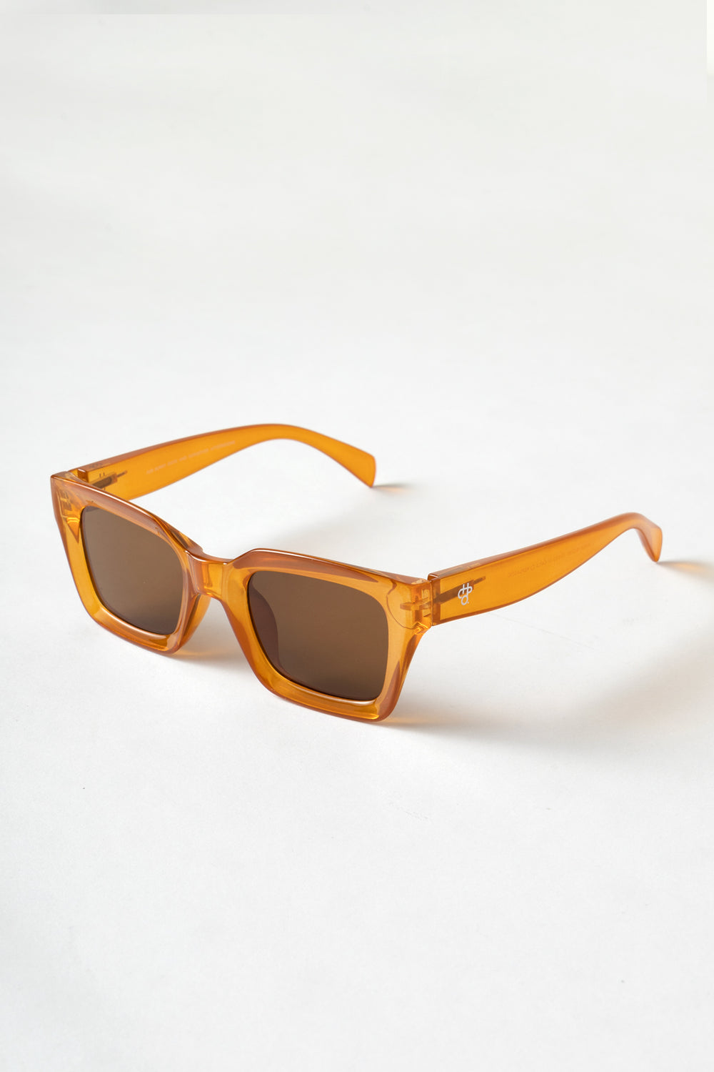 Anna sunglasses by CHPO in mustard, unisex, UV400 protection, made from 100% recycled plastic, CHPO branding on side, lens colour brown, frame colour mustard